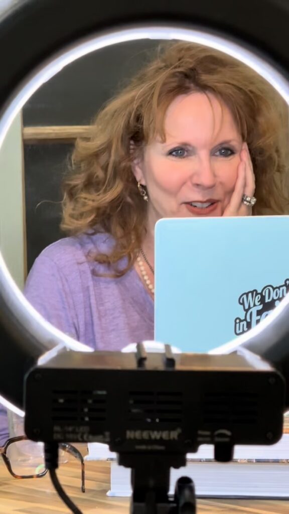 This is a photo of me in my kitchen with the ring light, holding a Zoom meeting with more nice people — a book club in Georgia. One of the women told me how much she loved the story from Exploding HushpuppiesThe Healing Power of the Gulf. She quoted details she remembered and it was wonderful, because I really struggled with the decision on whether or not to include that in the collection of short stories. And now, I think more people have commented on that story than any other in that particular book.
