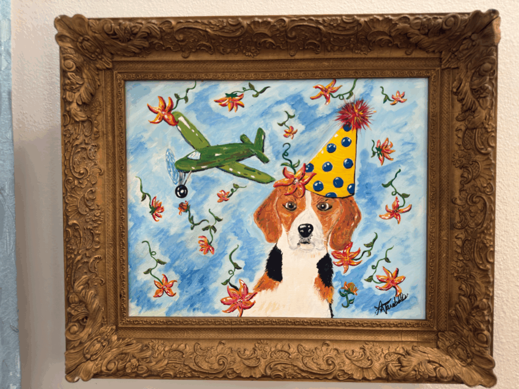 Your painting of the pup is adorable! Looks like your beagle.